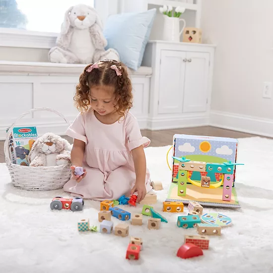 - Compatible with all other Blockables™ play sets; packaging folds out to double as a play space and pieces store in the sturdy box with handle for easy cleanup and portability