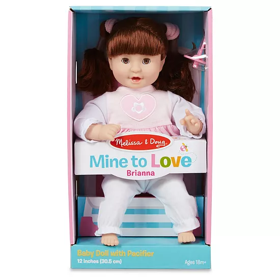 Simply adorable dolls from Melissa & Doug. Featuring a pretty embroidered outfit, this sweet-smelling Brianna doll opens and closes her eyes, and sucks her thumb or pacifier just like a real baby. With a soft, cuddly body, Brianna is sure to be your little mommy’s favorite.
