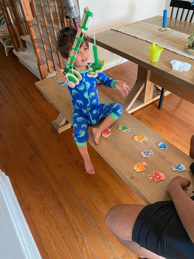 This Melissa & Doug game comes with magnetic fish that are numbered and patterned to enrich matching, sorting, and counting activities, and wooden rods to make collecting them fun!
