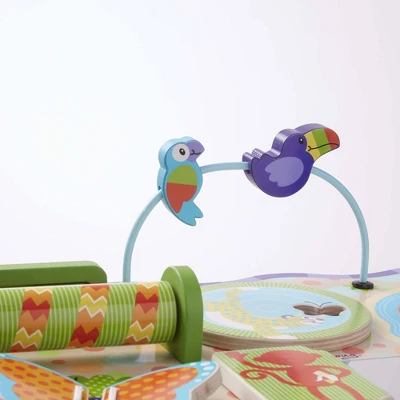This hands-on multi-activity table keeps kids 12 months and older engaged and entertained, while encouraging important developmental skills. Features include gears to turn, a tube to roll, beads to slide, flaps to open, a wheel to spin, and easy-to-grasp pieces to flip, push, and pull! Sturdy wooden construction, paired with whimsical jungle-themed designs, make this a long-lasting and welcome addition to any playroom. First Play toys feature bright colors, bold patterns, and whimsical designs that boost skills while sparking imagination and wonder—right from the start!