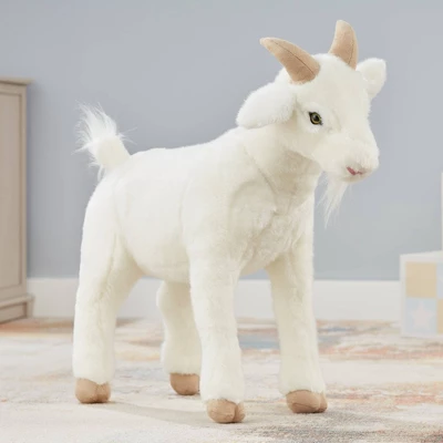 No kid-ding around, this adorable goat will wander into any kid’s heart! Its soft and pet-able white fur, scruffy beard, and adorable expression inspire goat-loads of cuddles. Detailed features include realistic eyes, droopy ears, pointy horns, and soft, split hooves. With excellent quality construction and a sturdy interior structure, this goat stands 22.5 inches tall and is ready to become part of any animal lover’s tribe.