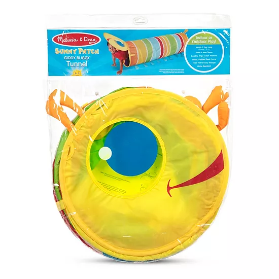 Melissa & Doug Giddy Buggy Tunnel’s smiling face covers one end, making it extra fun to hide and seek in this nearly five-foot-long tube.