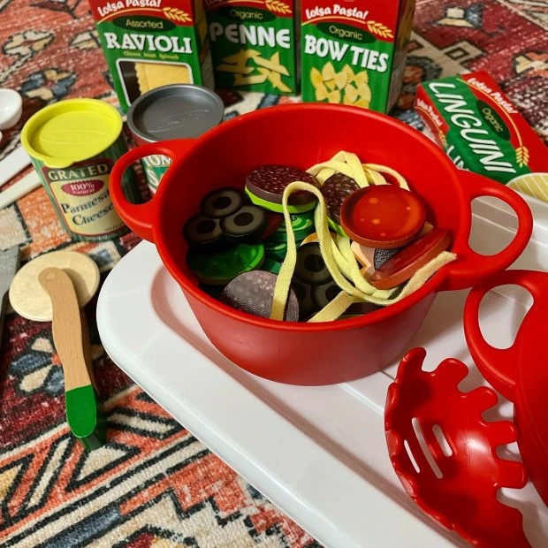 Prepare perfect pretend pasta every time with this Melissa & Doug Perfect Pasta Play Set.