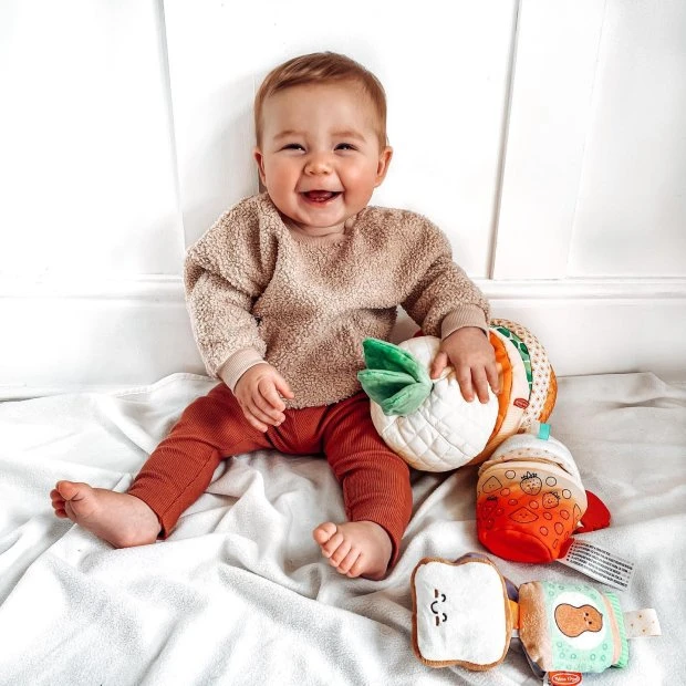 How sweet it is for babies to discover textures and sounds with the Melissa & Doug Pineapple Soft Stacker!
