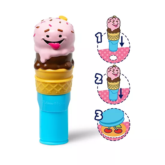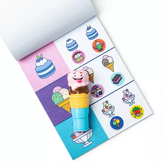 Melissa & Doug Sticker WOW!™ is a whole new way to play with stickers – use the cute, collectible character to stamp sweets-themed stickers on the 24-page Ice Cream activity pad and on other creative art projects