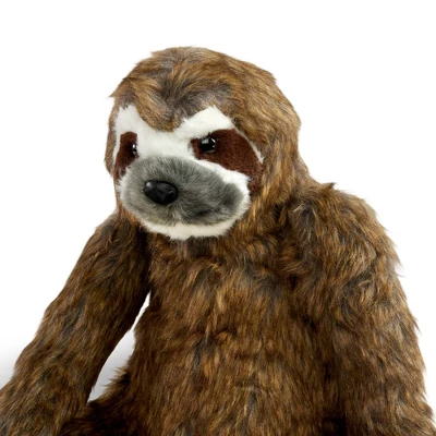 Kids will love hanging around with this adorable and cuddly sloth! Its long arms clasp together with self-stick tabs so this sloth is a terrific hugger. When it’s not catching a piggy-back ride or hanging from a lamp or chair, the sloth sits on its own about 14.5 inches high. The lushly colored fur is both durable and silky-soft to the touch, while quality construction means it will hold up to years of hugs and snuggling. Detailed features include a sweet tri-colored face, squishy nose, soulful eyes, and long (but soft!) “claws” on its bendable arms and legs.