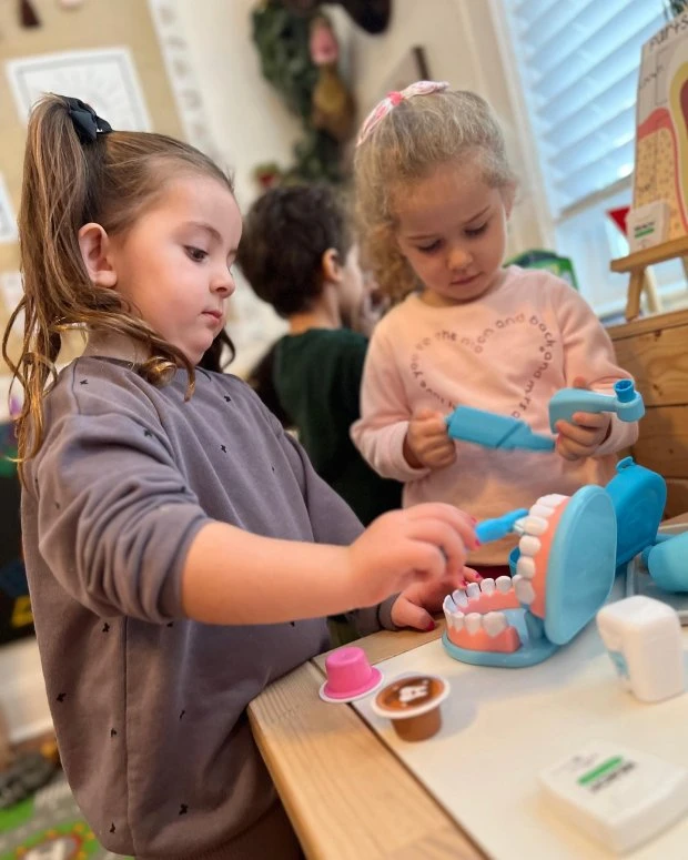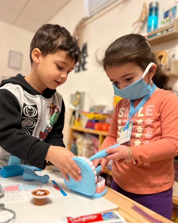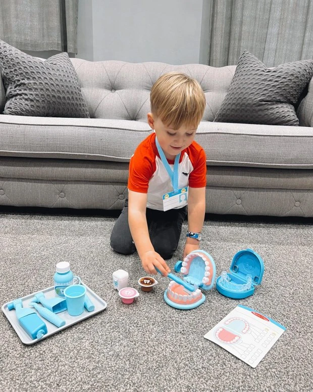 - 25-piece dentist play set with realistic pretend play dental care essentials to give cleanings, treat cavities, and fit retainers and braces on an over-sized set of pretend teeth