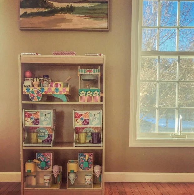 - Wooden pretend play drink dispenser for play kitchens, restaurants, and more