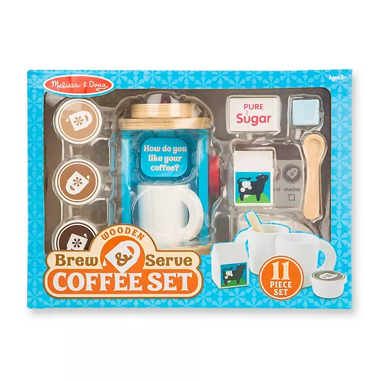 Your little one will love playing barista with this Melissa & Doug wooden brew & serve coffee set.